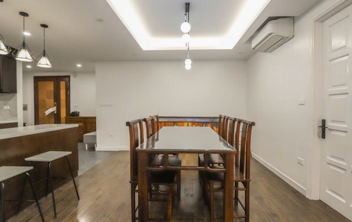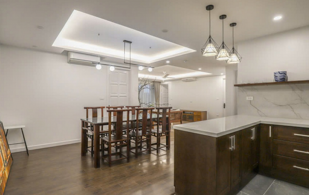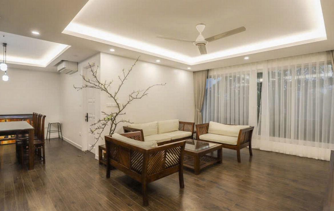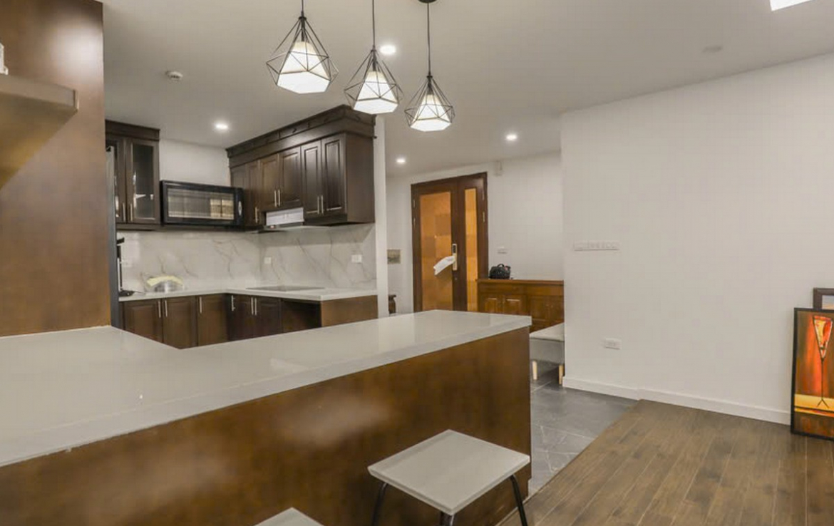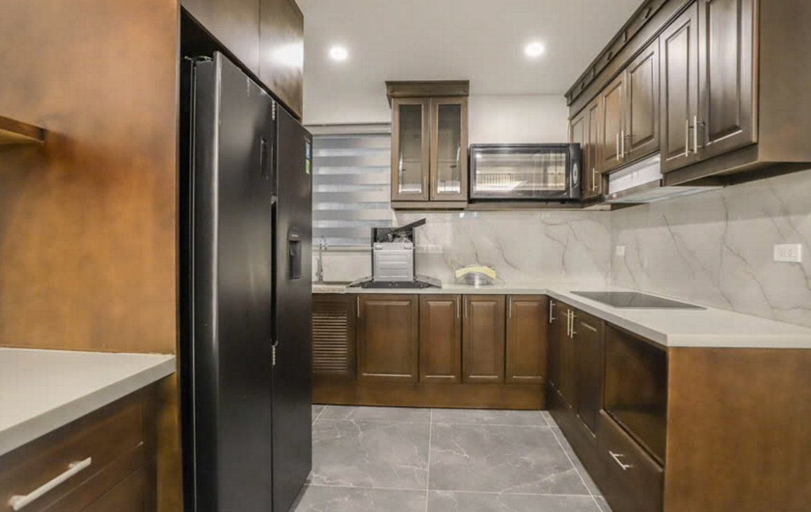 Căn hộ cho thuê được thiết kếvà sửa lại theo phong cách hiện đại, nội thất chất lượng cao với tông màu gỗ sang trọng.